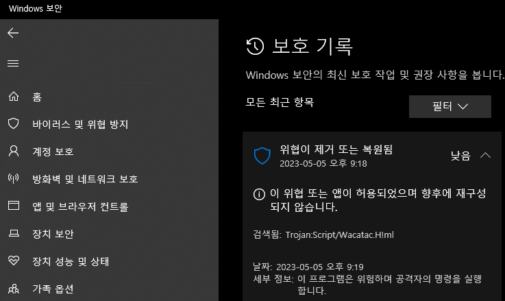 2. ๋ธ๋ผ์ฐ์ ์์์ ๋ค์ด๋ก๋ ์ฐจ๋จ ๋ฐ ์๋์ฐ ๋ํ๋์์์ ๋ฐ์ด๋ฌ์ค(์ ์ฑ์ฝ๋) ์ฐจ๋จ ๋ฌธ์