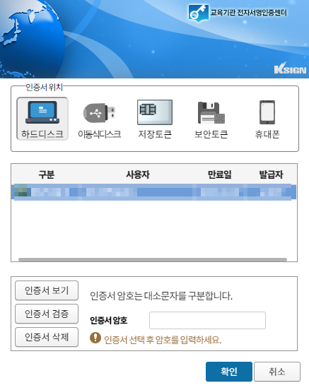 - ๋จ, ์ธ์ฆ์ ๋น๋ฐ๋ฒํธ๋ ์ง์ ์ ๋ ฅํ์๊ธฐ ๋ฐ๋๋๋ค. ๋ณด์์ ์ธ์ฆ์ ๋น๋ฐ๋ฒํธ๋ ๋ณธ ํ๋ก๊ทธ๋จ์์๋ ์ง์์ ํ์ง ์์ต๋๋ค.