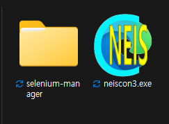 ๊ฐ. ์๋์ชฝ์์ ํ๋ก๊ทธ๋จ์ ๋ค์ด๋ฐ์ ์ ๋นํ ํด๋์ ์ฎ๊ธด ํ ์์ถ์ ํ๋ฉด ์๋์ฒ๋ผ neiscon3.exe ํ์ผ ํ๊ฐ์ selenium-manager ํด๋๊ฐ ์์ต๋๋ค. ์ด ๋์ ํญ์ ๊ฐ์ ํด๋๋ด์ ์กด์ฌํด์ผ ํฉ๋๋ค.