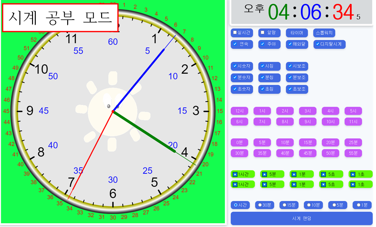 8. ์๊ฐ, 30๋ถ, 15๋ถ, 10๋ถ, 5๋ถ, 1๋ถ ๋จ์๋ก ์๊ฐ ๋ง์ถ๊ธฐ๋ฅผ ์ํ ๋๋ค ๋ฌธ์ ์์ฑ ๊ฐ๋ฅ