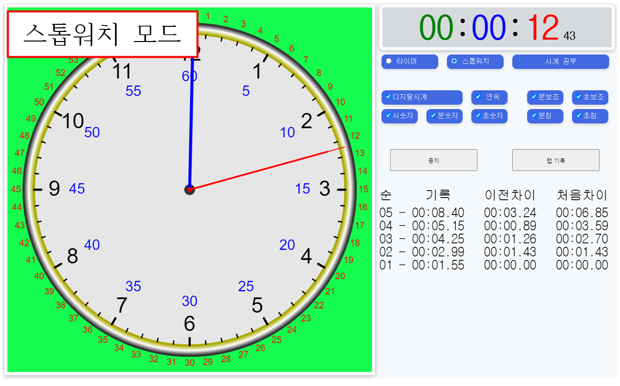 3. ์๋, ํ์ด๋จธ, ์คํฑ์์น ๊ธฐ๋ฅ (๋จ์ - ์ ์ฅ์ ๋์ง ์์.)
