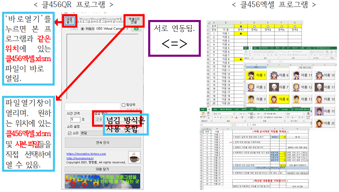 * ํด456QR ํ๋ก๊ทธ๋จ <-> ํด456์์ ํ๋ก๊ทธ๋จ(์์ ๋งคํฌ๋ก ํ์ผ)๊ณผ ์ฐ๋